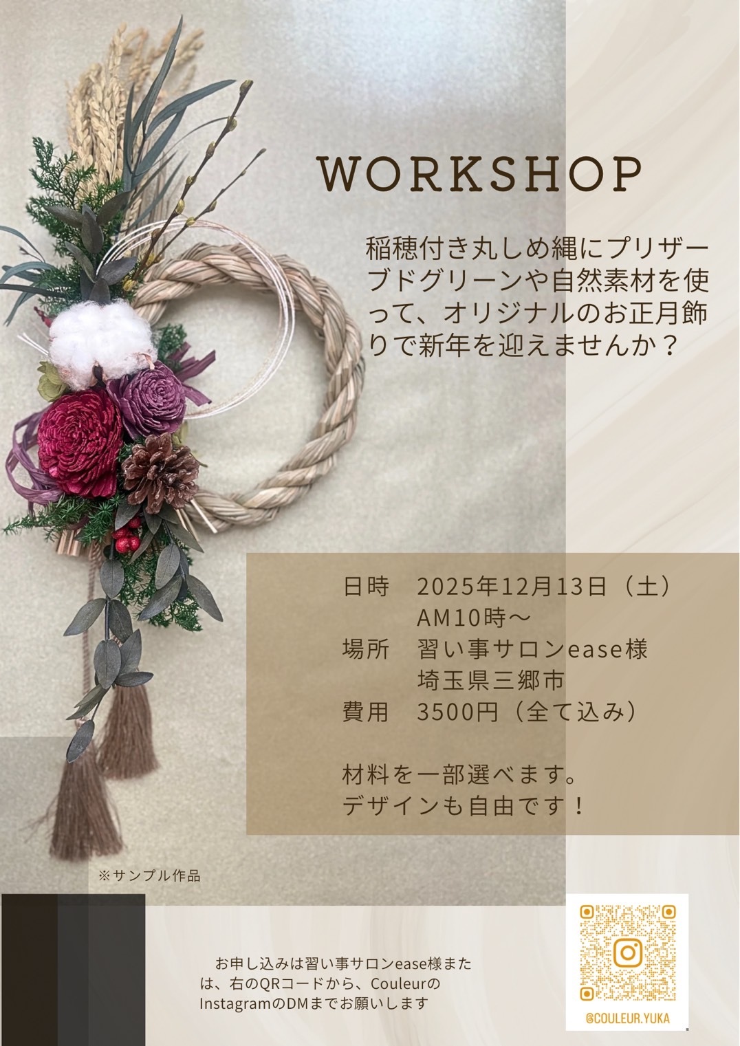 プリザ 穂付き丸しめ縄アレンジメントレッスン募集中!!
